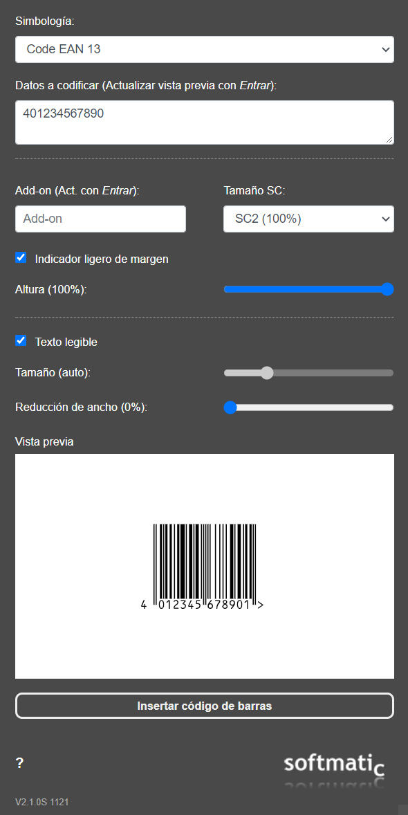 Adobe InDesign - Complemento Código de BarrasCreación sencilla de códigos de barras directamente en su documento de InDesign. La extensión de código de barras de Softmatic para Adobe InDesign 2021 o superior es compatible con todas las simbologías de códigos de barras 2D, de almacenamiento y de venta al detalle. Se garantiza que todos los códigos de barras cumplen con los estándares GS1 e ISO respectivos.